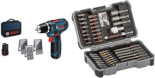 Bosch Professional Akkuschrauber GSR 12V-15 (2x 2,0 Ah Akku, 12 Volt, Schrauben-Ø max: 7 mm, in Tasche) + Bosch Professional 43tlg. Schrauber Bit Set