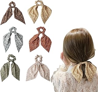 Suke Schal-Haargummis, 6 Stück Scrunchies Satin-Schleife, Chiffon Elastisch Haarschals Haargummis Vintage-Blumen-Muster für Frauen und Mädchen