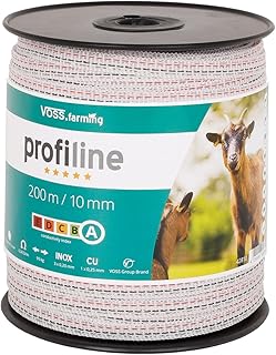 VOSS.farming Weidezaunband, Profiline, 200m 20mm, Kupfer und NIRO Leiter, Weiß Schwarz, Elektrozaun Band, Pferdezaun
