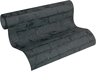 A.S. Création Vliestapete Best of Wood`n Stone 2nd Edition Tapete in Stein Optik fotorealistische Steintapete Backstein 10,05 m x 0,53 m metallic schwarz Made in Germany 907882 9078-82,