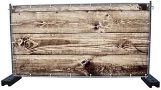 (Mesh) Holzwand B6 Bauzaunbanner, Sichtschutz, Windschutz, Zaunblende, Festival Banner, 340 x 173 cm, DRUCKUNDSO