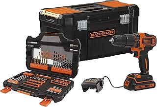 Black+Decker BDCHD18S1KA-QW Akku-Schlagbohrschrauber (18V 1,5Ah, mit 2-Gang Getriebe, variable Drehmomentvorwahl, inkl. 104tlg. Zubehör im Koffer, Werkzeugkoffer, 1x Akkus, 400mA Ladegerät), 18 V