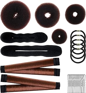 28 Stücke Krapfen Haarknoten Hersteller Set, 4 Stücke Haarknoten Hersteller, 2 Stücke Schaum Schwamm Knoten Former, 2 Stücke Drehung Frisur Clip, 15 Stücke Haarnadel, 5 Stücke Haargummis