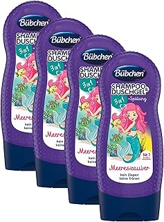 Bübchen Kids Shampoo und Duschgel plus Spülung 3in1 Meereszauber, Kinder-Shampoo und -duschgel + Spülung, pH-hautneutrale Pflege für Kinderhaut, mit frischem Duft, Menge: 4 x 230 ml